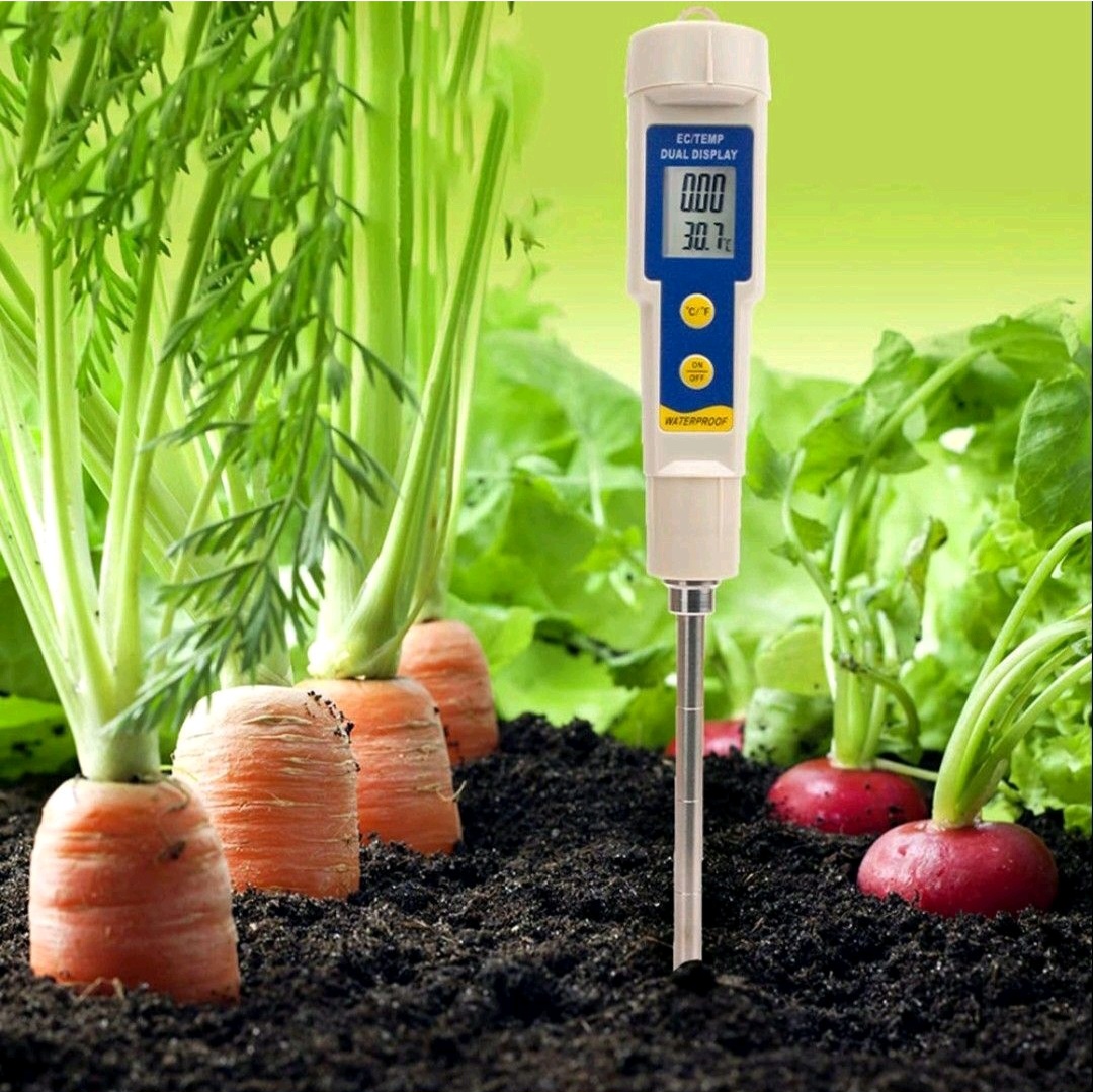 🔹 Measurement of soil EC: is typically done using a device called an EC meter or a conductivity meter. The meter measures the electrical conductivity between two electrodes inserted into the soil. The reading is usually provided in deciSiemens per meter (dS/m) or milliSiemens per meter (mS/m).